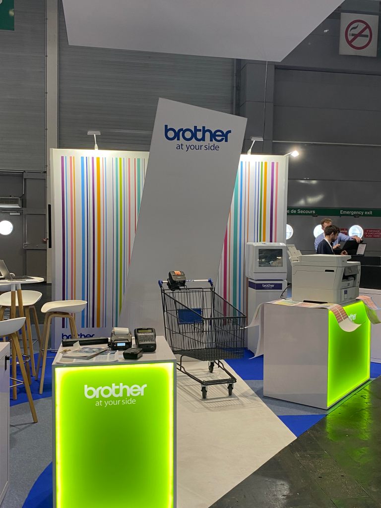 Découverte de l’imprimante qui envoie les commandes. La commerciale nous a fait une démonstration de l’imprimante pour découvrir le produit. Elle nous a offert une boisson, il y avait également de la PLV pour animer le stand. Sur celui d’Epson, des affiches avec Usain Bolt, l’athlète américain égérie de la marque.