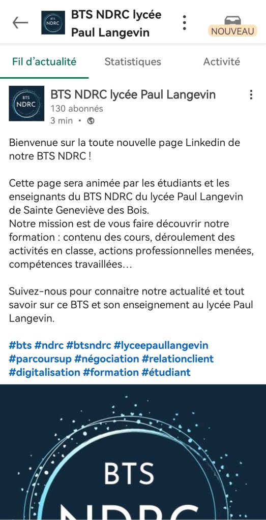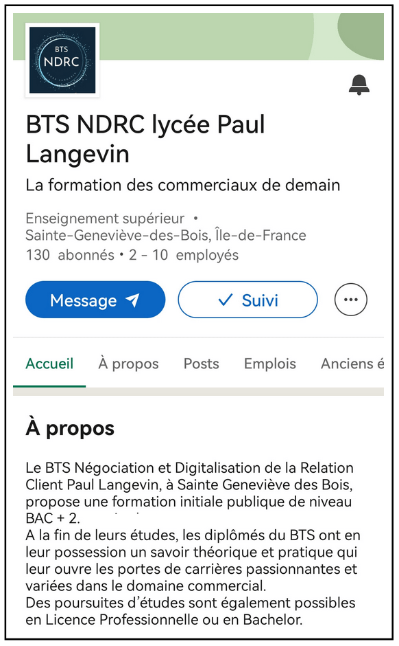 Cette année, la promotion 2024 va gérer la toute nouvelle page Linkedin de la formation, et nous, les étudiants de première année, promotion 2025, nous contribuons à la mise en ligne de contenus et nous utilisons la communication de notre BTS comme support d’étude.