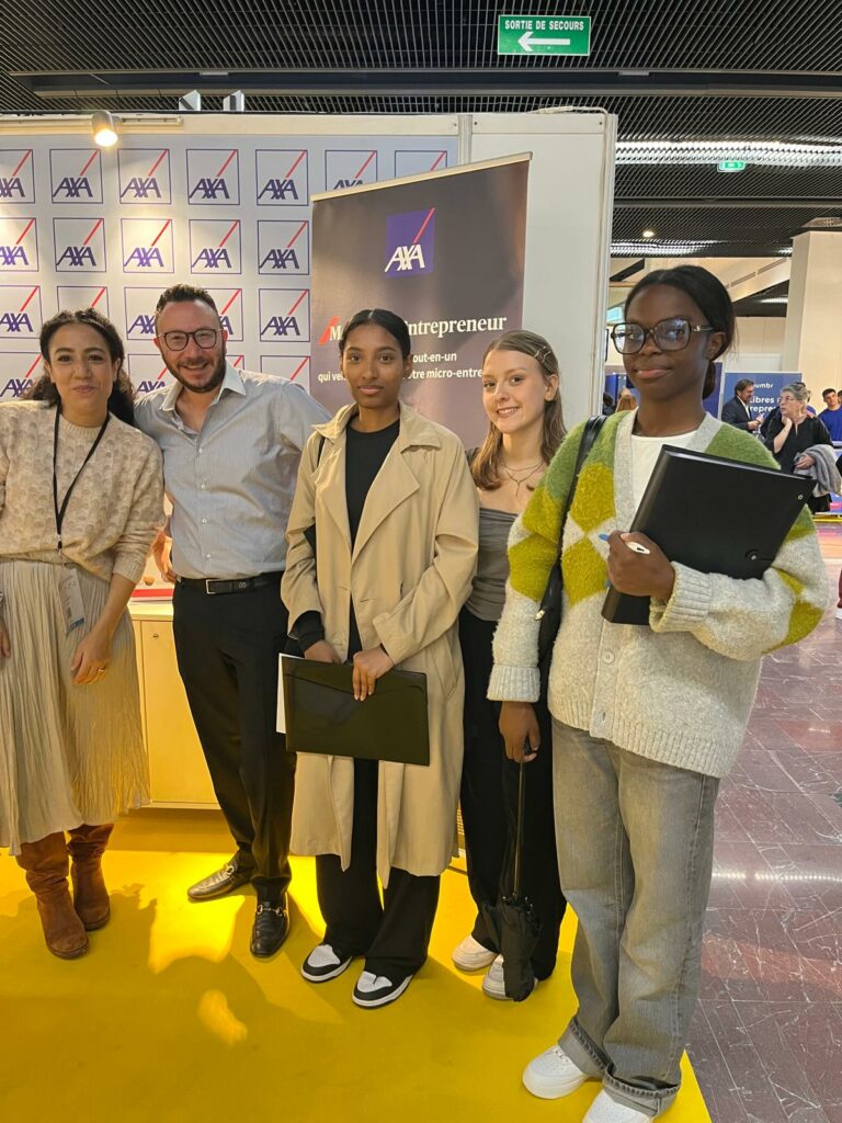 Le stand de la société Axa propose des solutions d’assurances et de financement aux entrepreneurs.