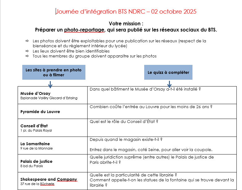 Le 2 octobre 2025, nos professeurs nous ont organisé un séminaire qui avait pour objectif principal d’intégrer la promo. 2027 du BTS NDRC Langevin. L’intérêt de cette journée était de faire connaissance avec les NDRC 1 et de se créer un bon souvenir pour démarrer l’année 2025.