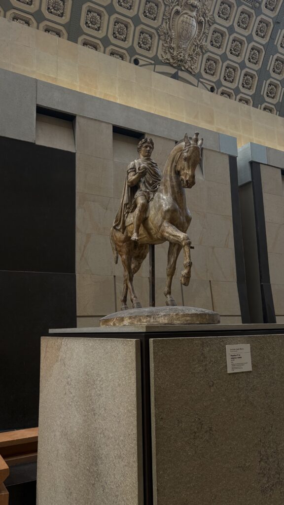 Pas question de flâner sans but ! Notre mission du matin : Retrouver et sélectionner des œuvres en lien avec nos thèmes de CGE : Les animaux pour nous et les objets pour les NDRC 1. Une sorte de chasse au trésor artistique. Nous devions faire des selfies devant des œuvres. Dans mon groupe, cela a entrainé des débats improvisés sur nos choix. La matinée a filé à toute vitesse !